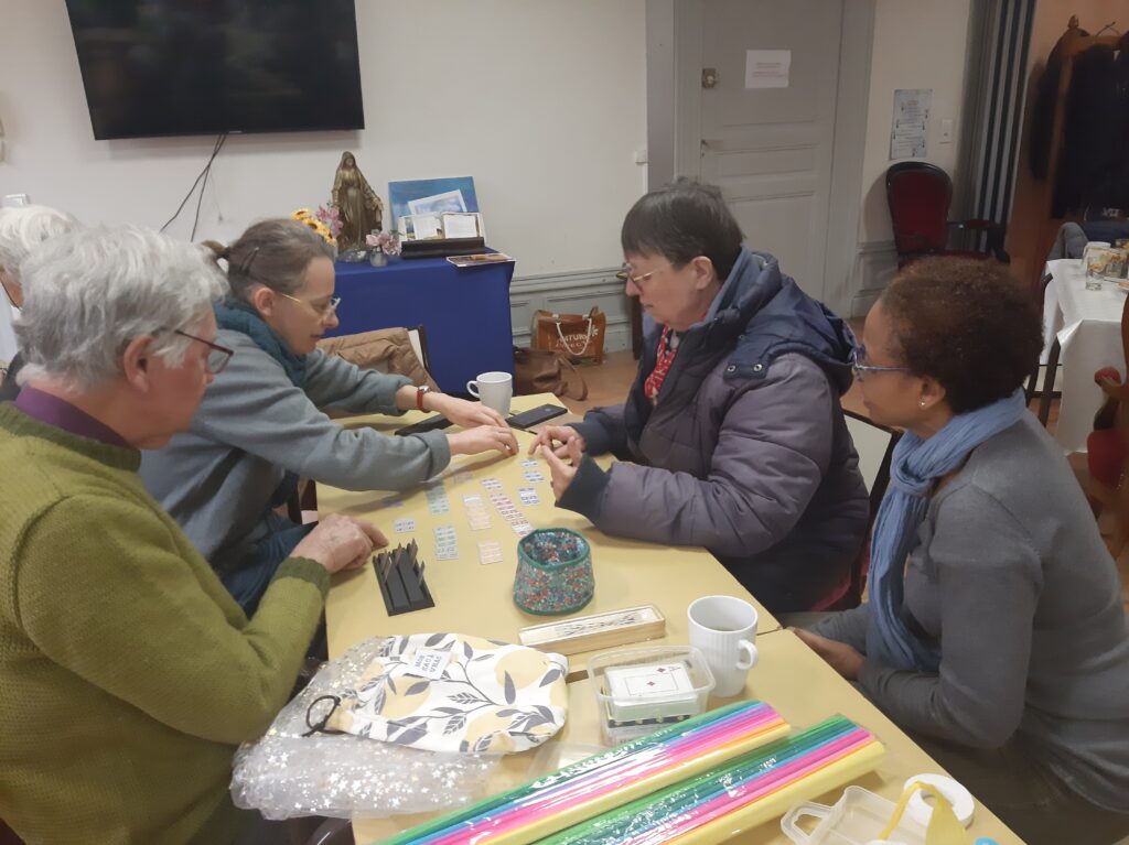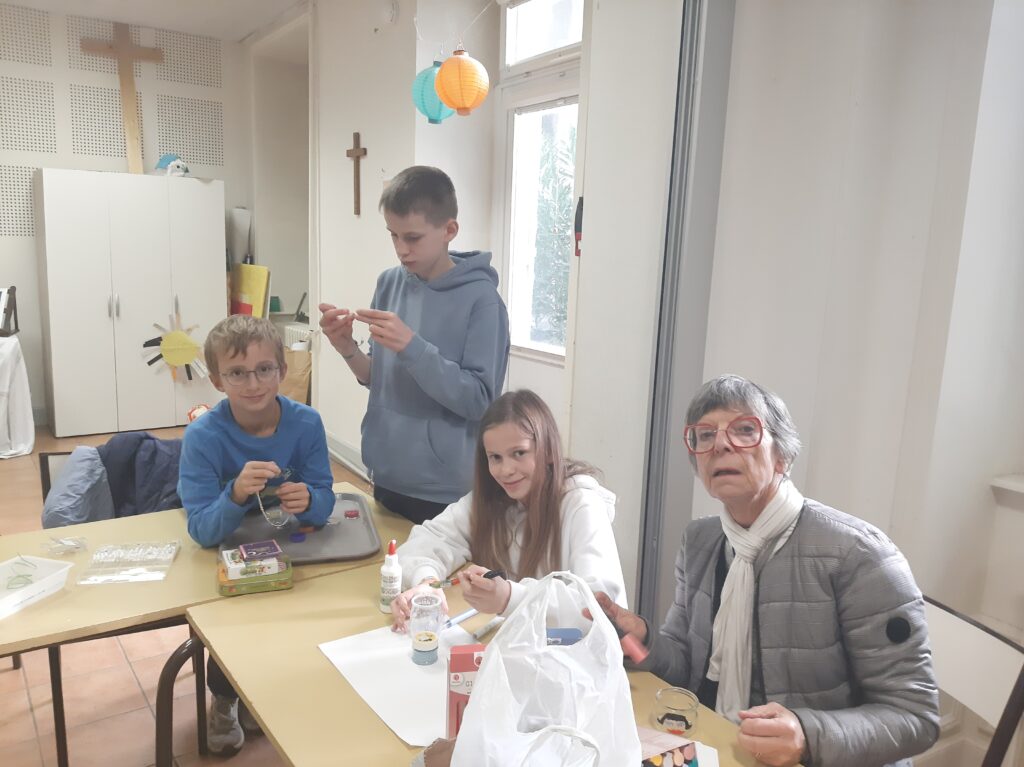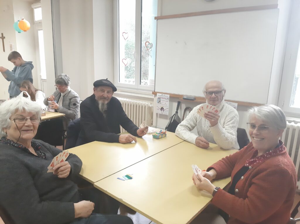 Un bel après-midi convivial autour d’un bon goûter, de parties de Rummikub, belote et échecs, d’ateliers perles et peintures sur verre. Une rencontre multi-générations très sympathique…sans oublier Prunelle! Merci à tous!